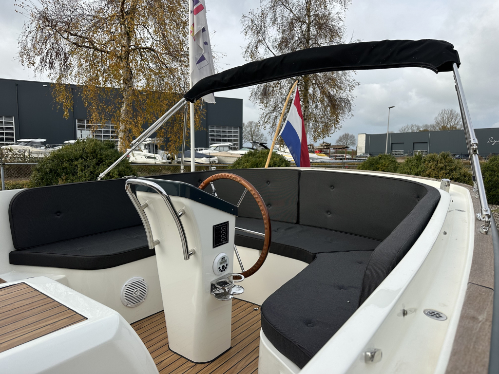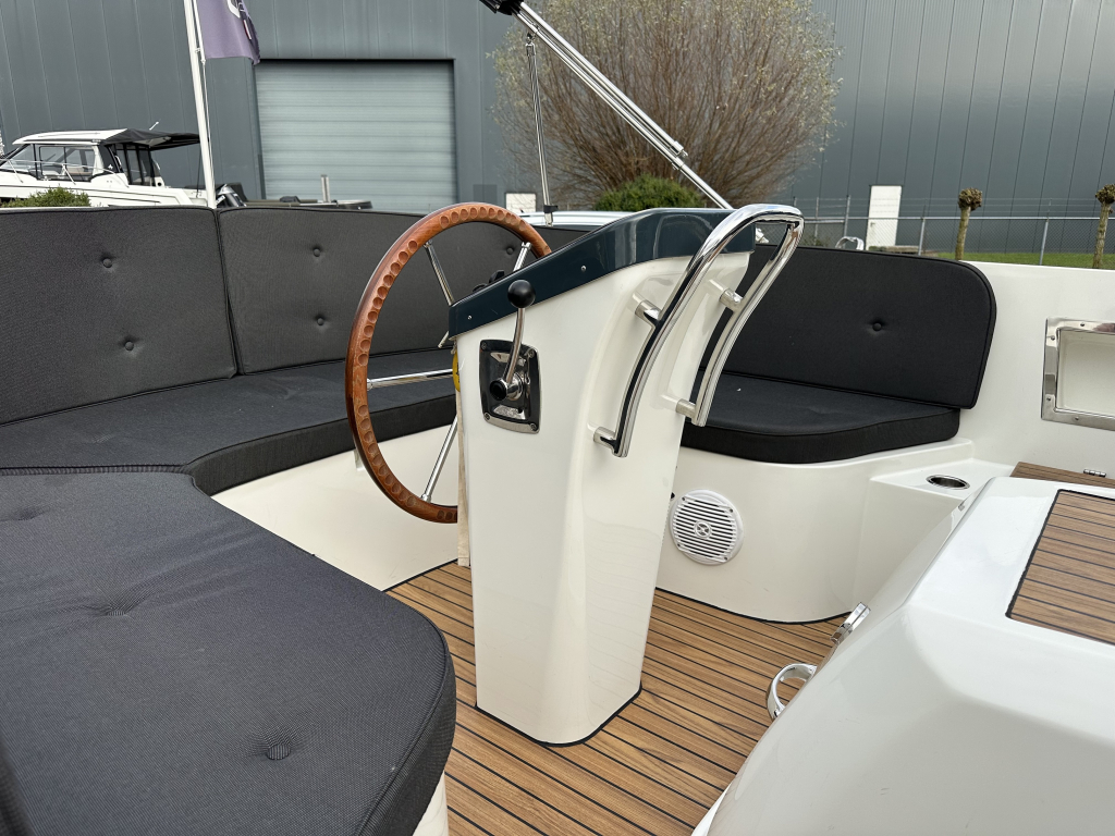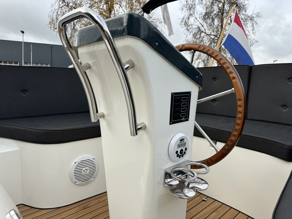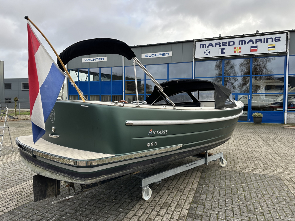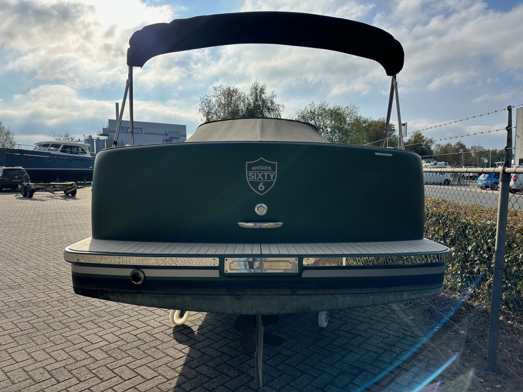 Antaris Sixty6, anders dan alle andere sloepen. Een stoere boeg en een spiegel die schuin naar binnen loopt, heeft de sloep een eigentijds karakter. De breedte zorgt voor enorm veel stabiliteit en
