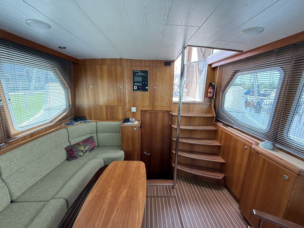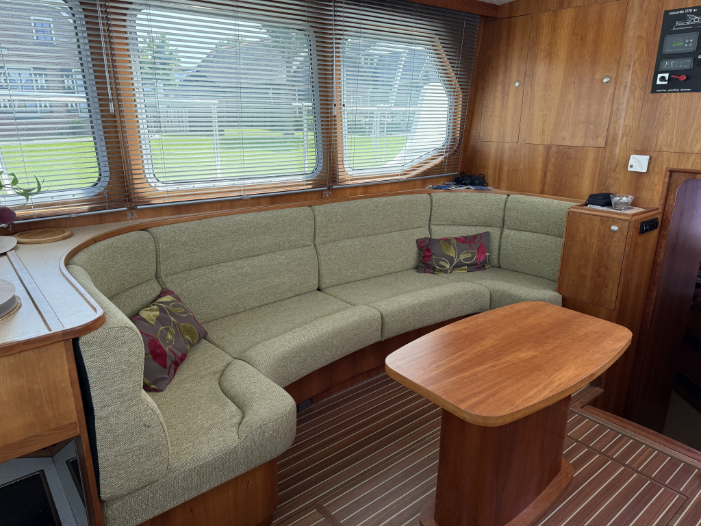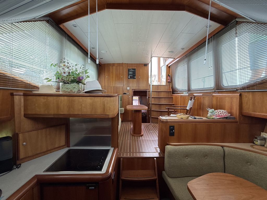 Varen met dit schip is erg comfortabel. Niet alleen door de betrouwbare en stille Vetus motor, maar ook door de aanwezige hydraulische boeg- en hekschroef. Veilig manoeuvreren in een krappe haven of sluis is dus geen probleem. Ook van binnen is dit schip luxe en mooi afgewerkt. De lichte salon is heerlijk ruim.