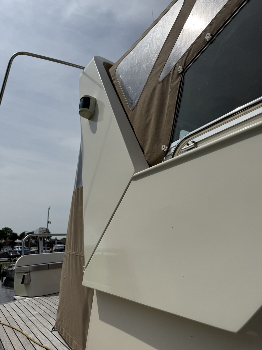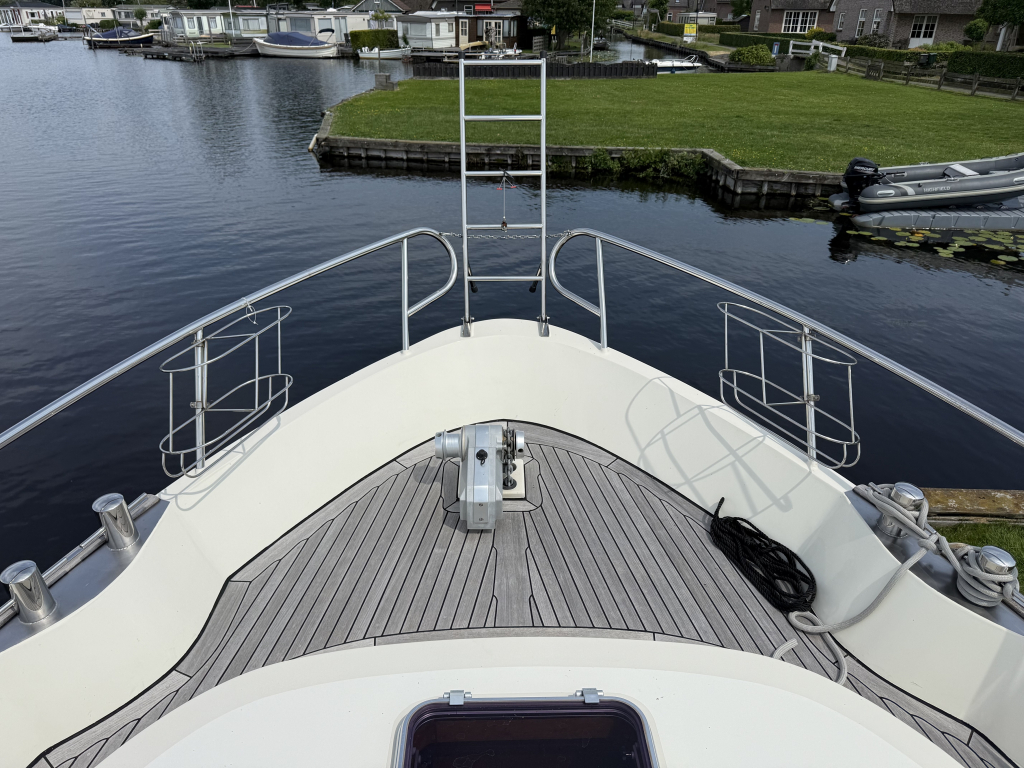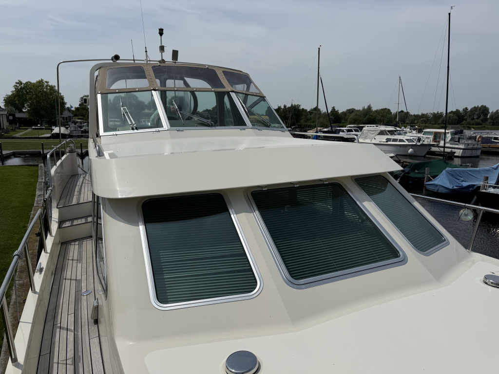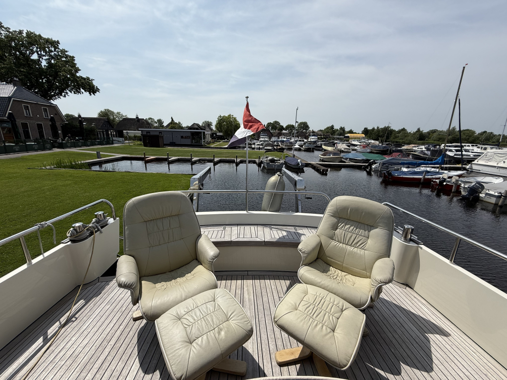 Het achterdek is groot en voorzien van een vaste bank met bergruimte. Het stuurgedeelte is af te sluiten middels een mooie cabriotent. Zonder deze tent is het achterdek en de stuurstand één groot geheel. Voor een bijboot is dit schip voorzien van RVS davits.
