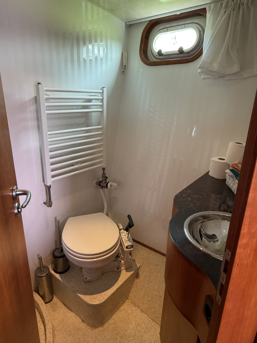 De aanwezige CV installatie zorgt altijd voor een zeer behaaglijk klimaat door het gehele schip, zeker samen met de volledige dubbele beglazing. Leuk detail is de flat screen TV met elektrische lift.