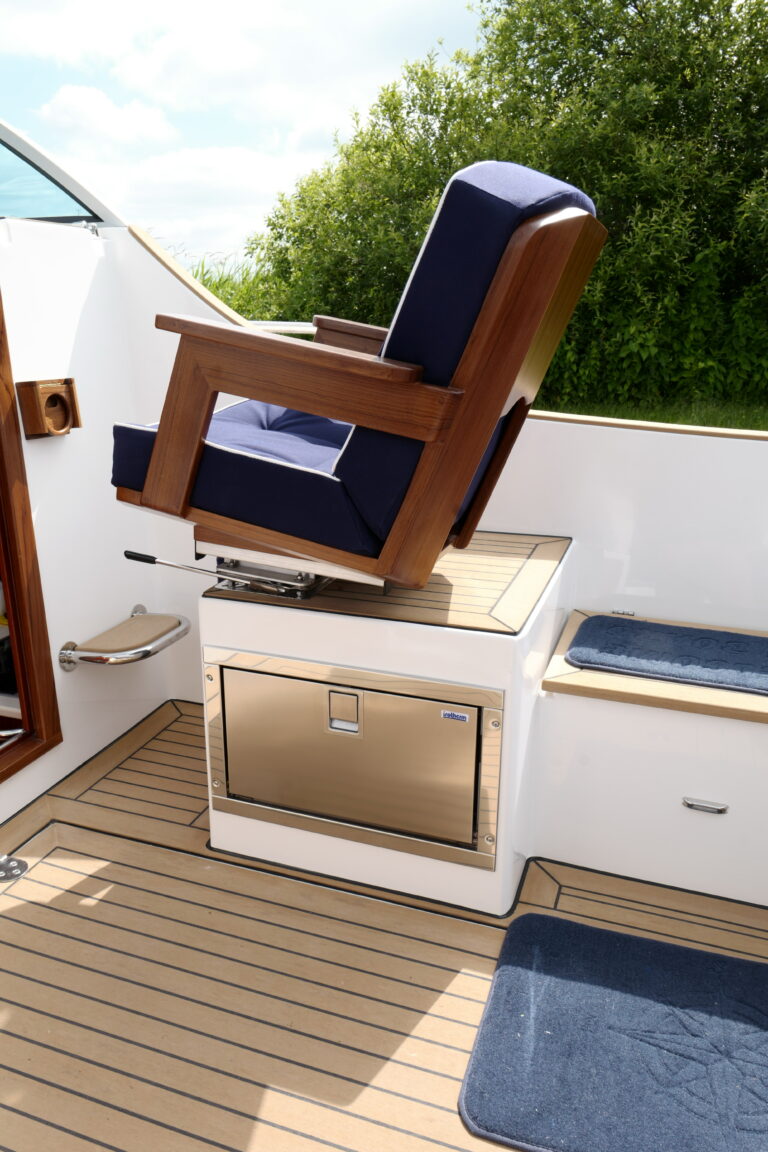 Eén van de typerende kenmerken van de Maril 950 is de klassieke uitstraling. De robuuste kabelaring, blinkend rvs en de afwerking met onderhoudsarm kunstteak maakt het een echte blikvanger. Vanaf de draaibare verhoogde stuurpositie en passagiersstoel heeft u een prachtig zicht over het water. Daarnaast heeft u zowel binnen in de kajuit als buiten in de kuip enorm veel leefruimte.
