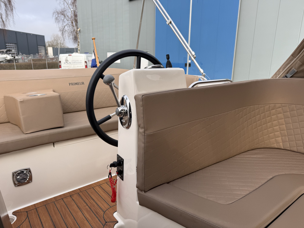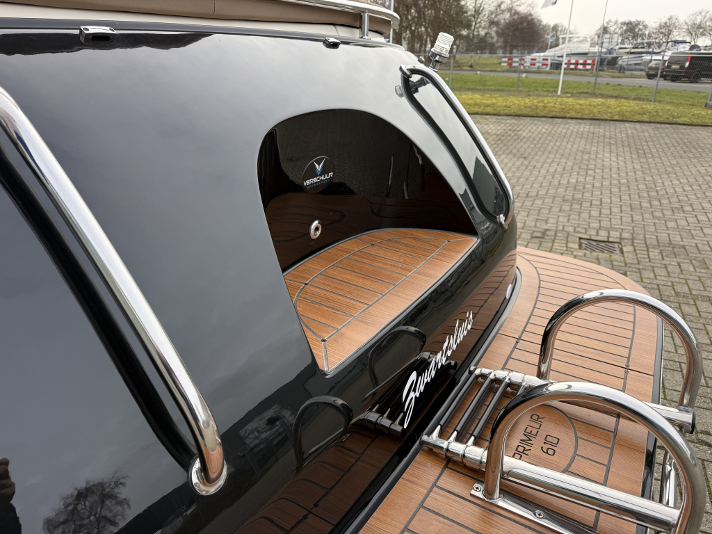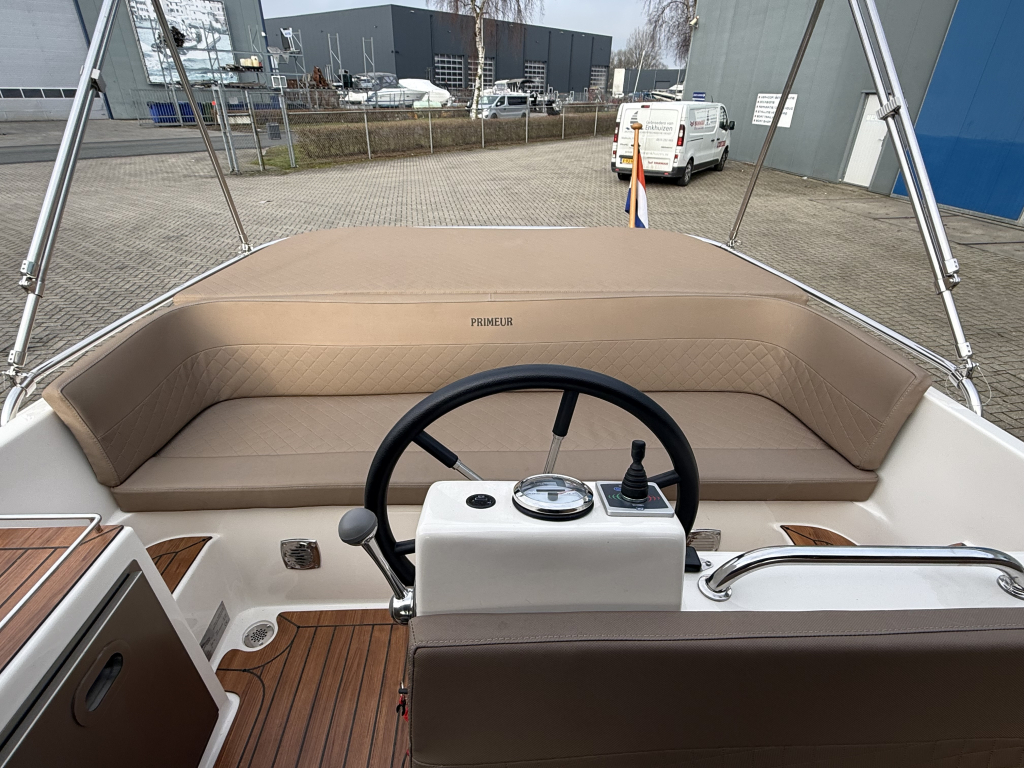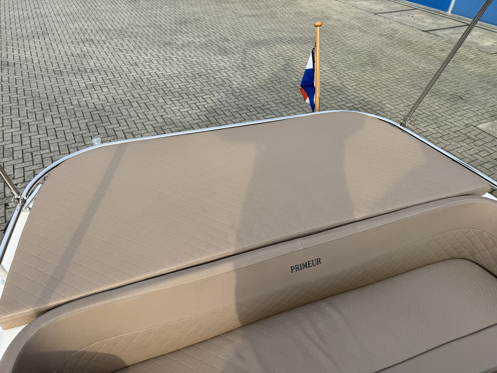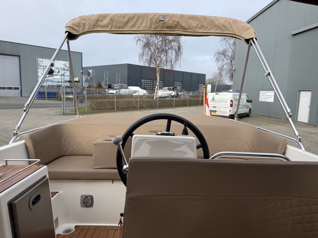 Van 1e eigenaar, zeer nette Primeur 610 Tender uit 2019.Voorzien van o.a.; Boegschroef, Exclusieve package, cabrioletkap met schuin achterkleed en een biminitop. Originele gelcoat!!