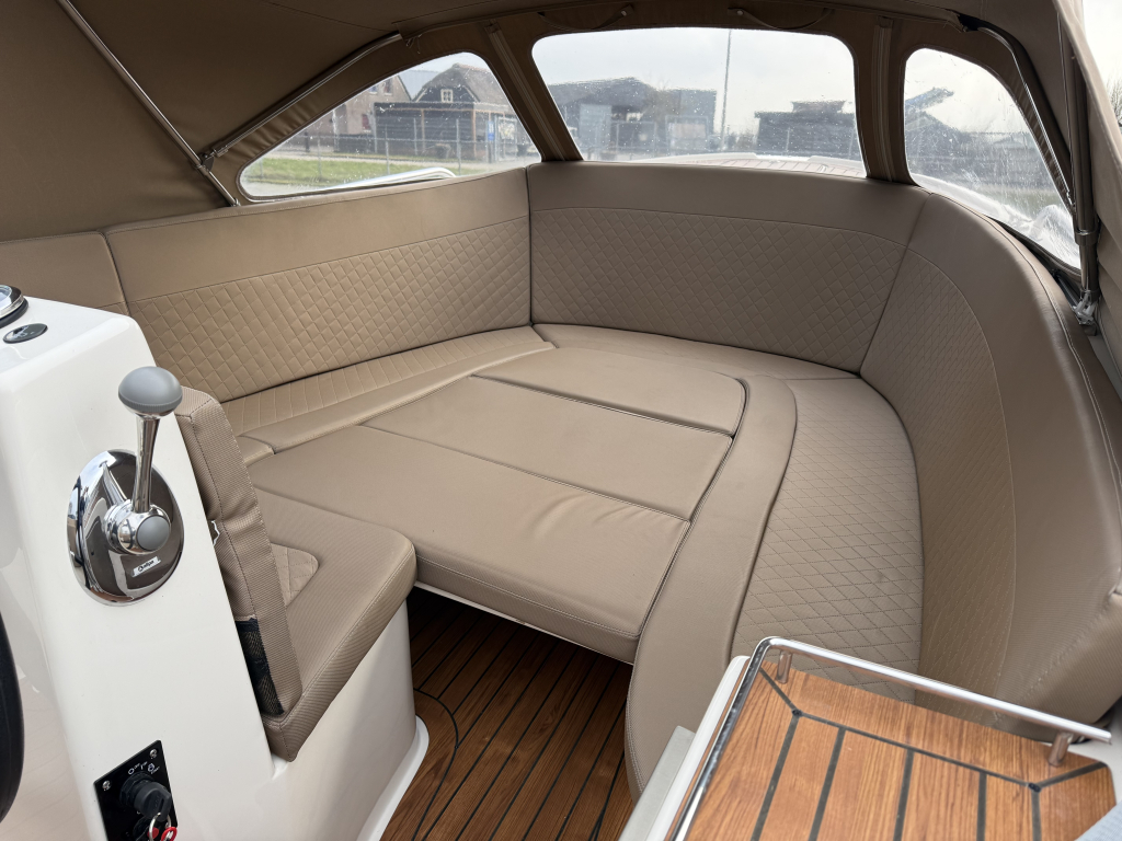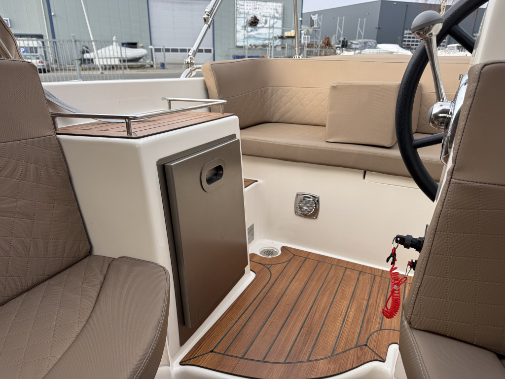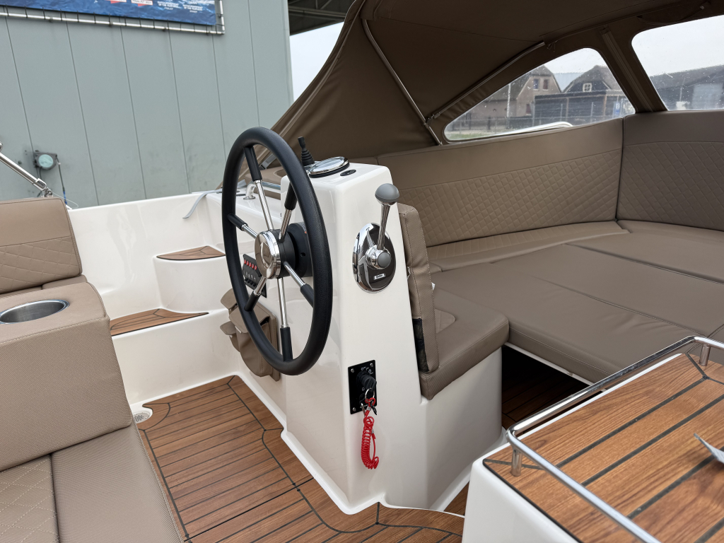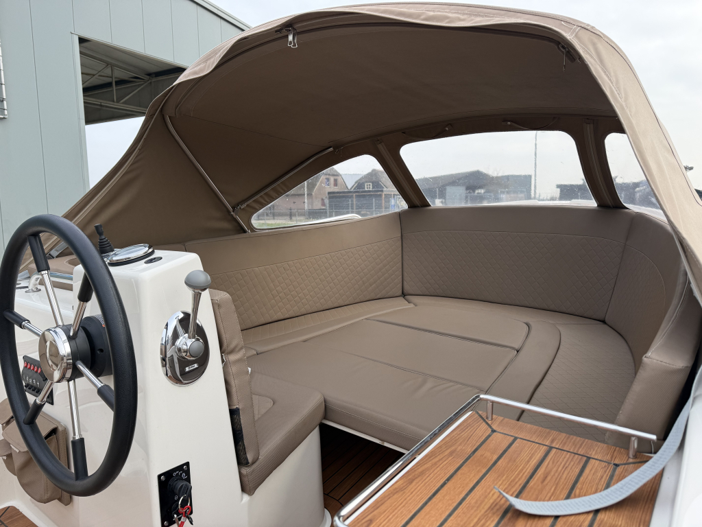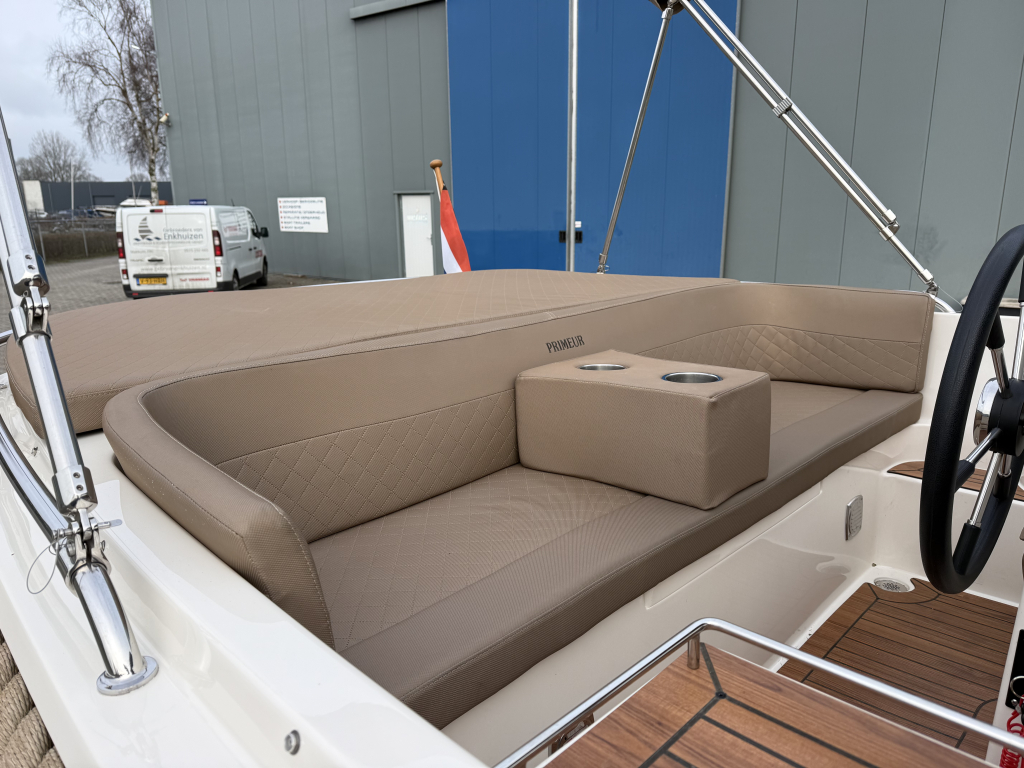 Van 1e eigenaar, zeer nette Primeur 610 Tender uit 2019.Voorzien van o.a.; Boegschroef, Exclusieve package, cabrioletkap met schuin achterkleed en een biminitop. Originele gelcoat!!