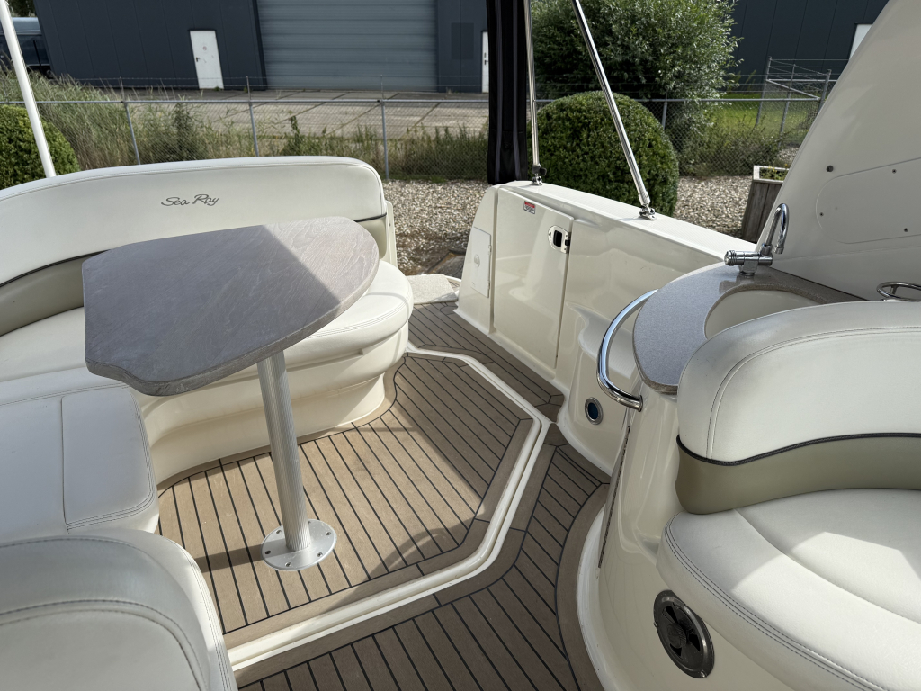 De Sea Ray Sundancer 275 uit 2006 is goed onderhouden en compleet uitgevoerd.